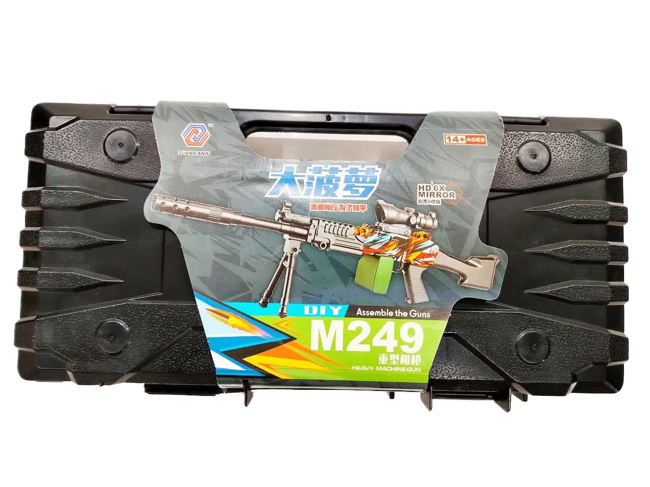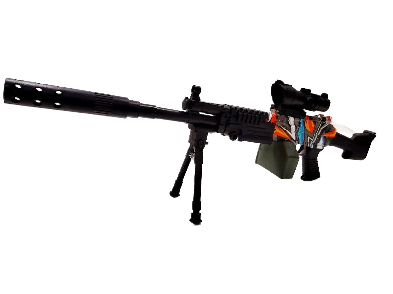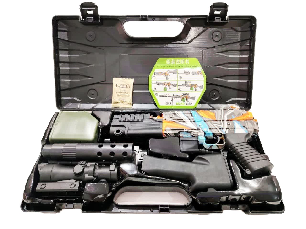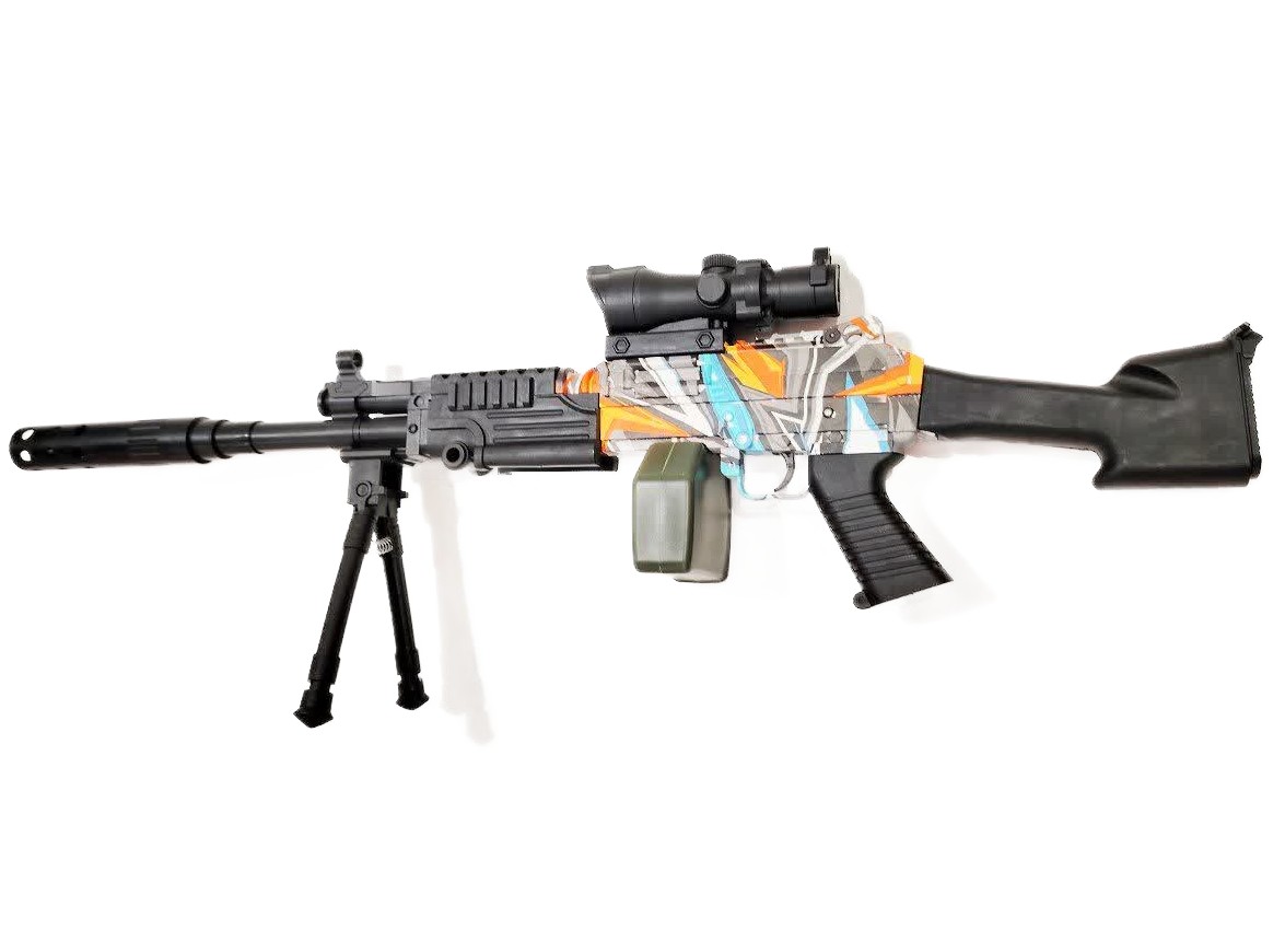 تفنگ تیر ژله‌ای آبرنگی دوربین دار m249 با بسته بندی کیفی